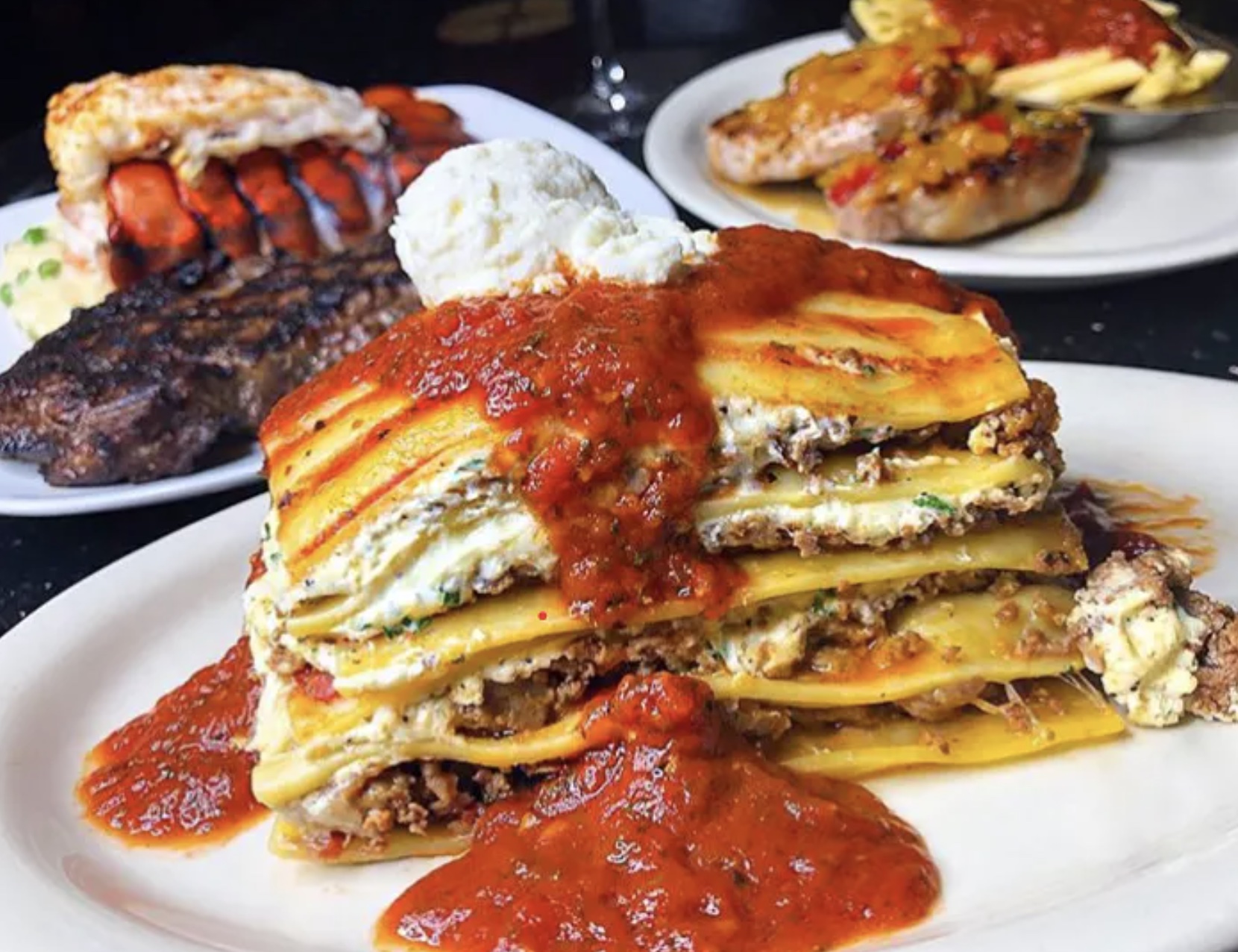 We are an Italian-inspired steakhouse restaurant that first opened in the spring of 1998 in Syracuse, NY. We grew up in Upstate New York searching for a restaurant with an exciting atmosphere to enjoy a perfectly cooked steak and a side of delicious pasta, but our travels didn’t lead us to find exactly what we were craving so… we decided to create it ourselves! At Delmonico’s, we pride ourselves in being a fusion between a casual steakhouse and one of the finest Italian restaurants in town. With an emphasis on consistency and using high quality, fresh ingredients we create generous-sized signature dishes that the whole family will enjoy. Love beef? You need to try our juicy 24 ounce Certified Angus Beef