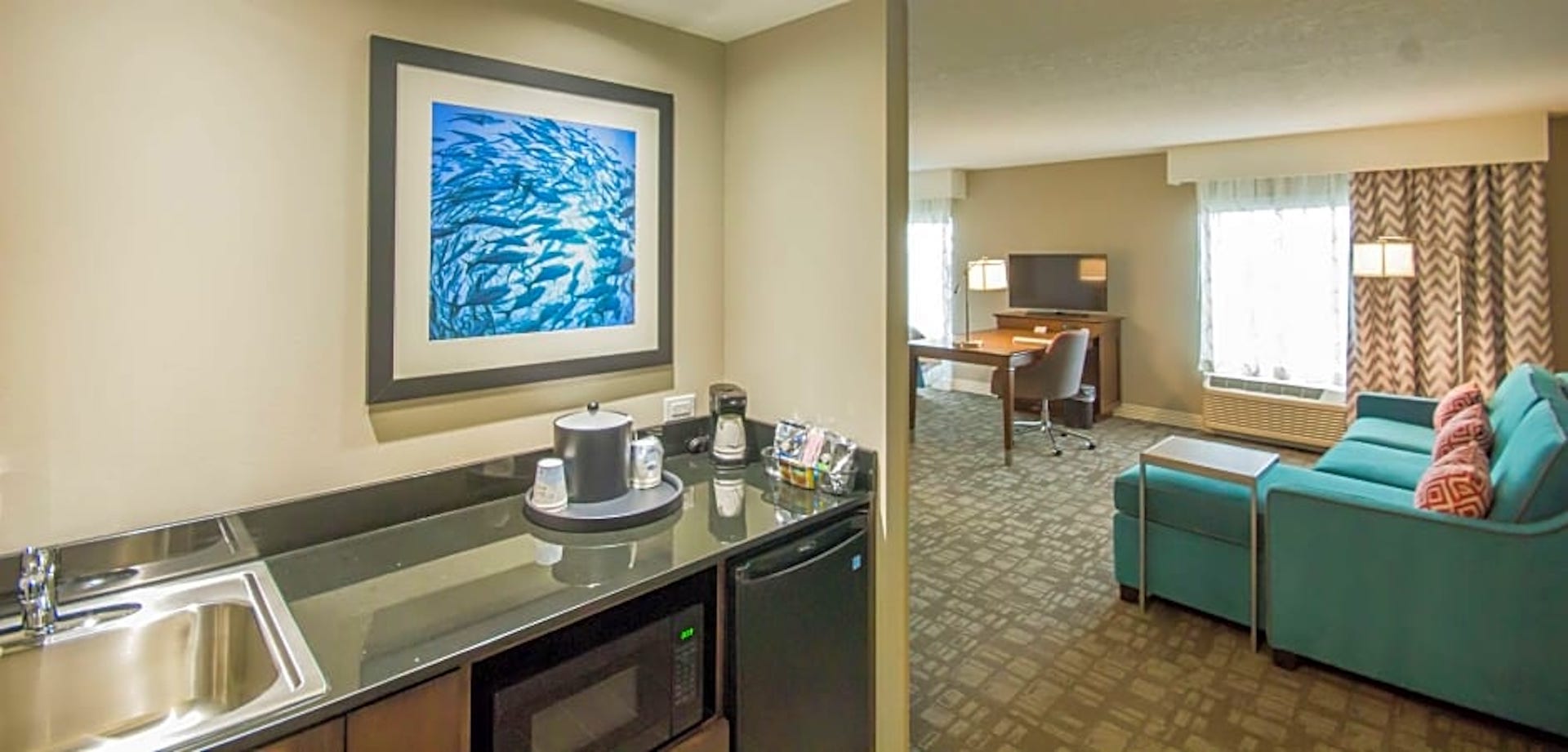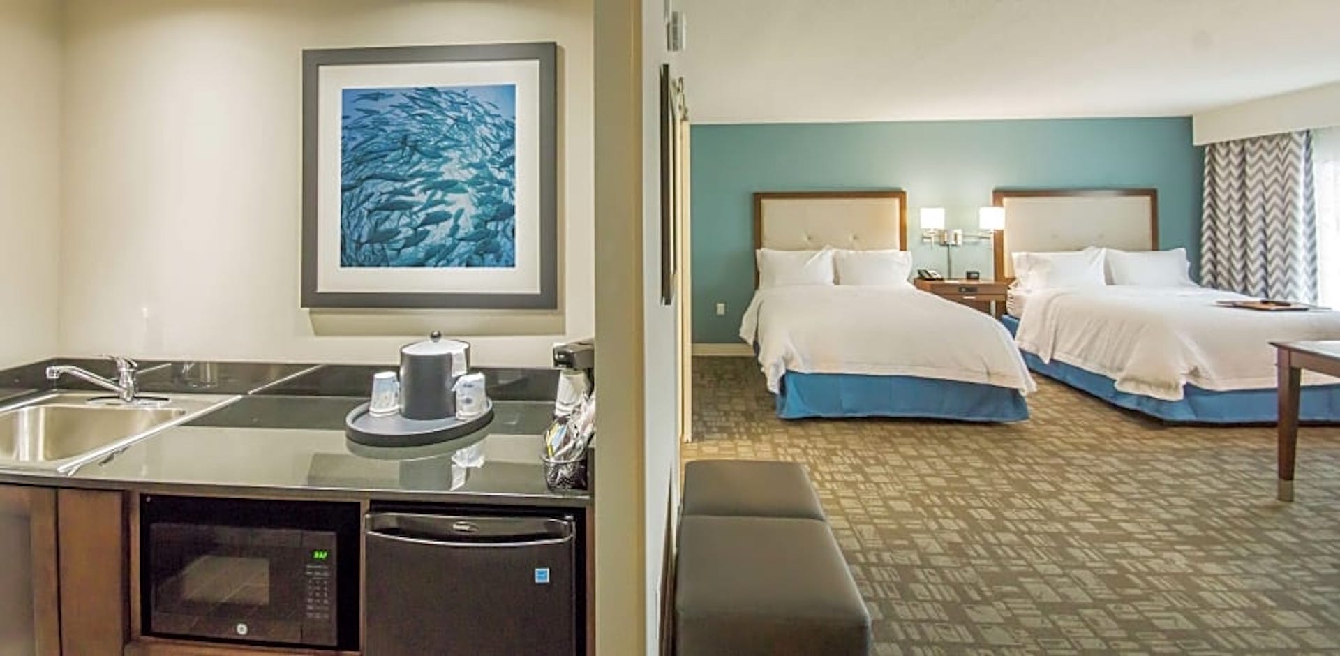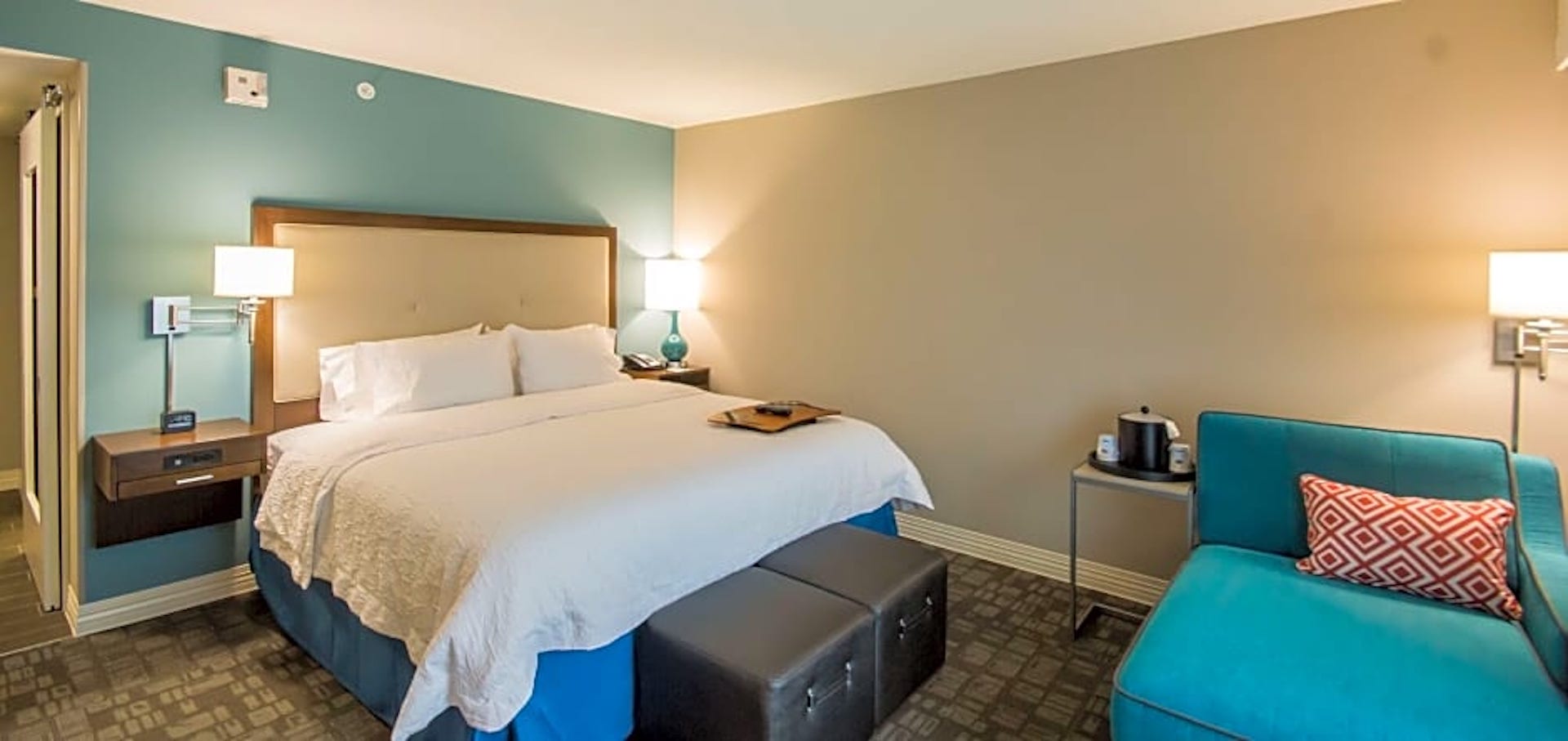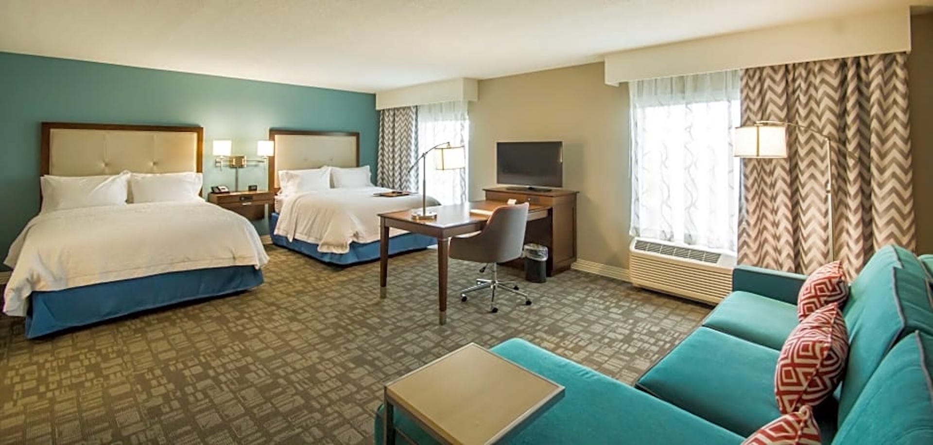 Make yourself at home in a guestroom or suite, equipped with a clean and fresh Hampton bed®, generous work space, a flat-screen TV, a microwave, refrigerator and free Wi-Fi. Wake up to freshly made coffee in your guest room before savoring Hampton’s free hot breakfast®. If you’re in a rush, don’t miss the most important meal of the day. Simply grab one of our free Hampton On the Breakfast Bags®, available Monday to Friday.